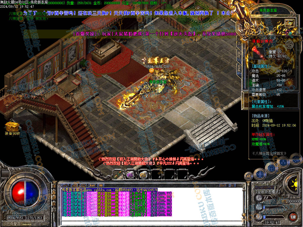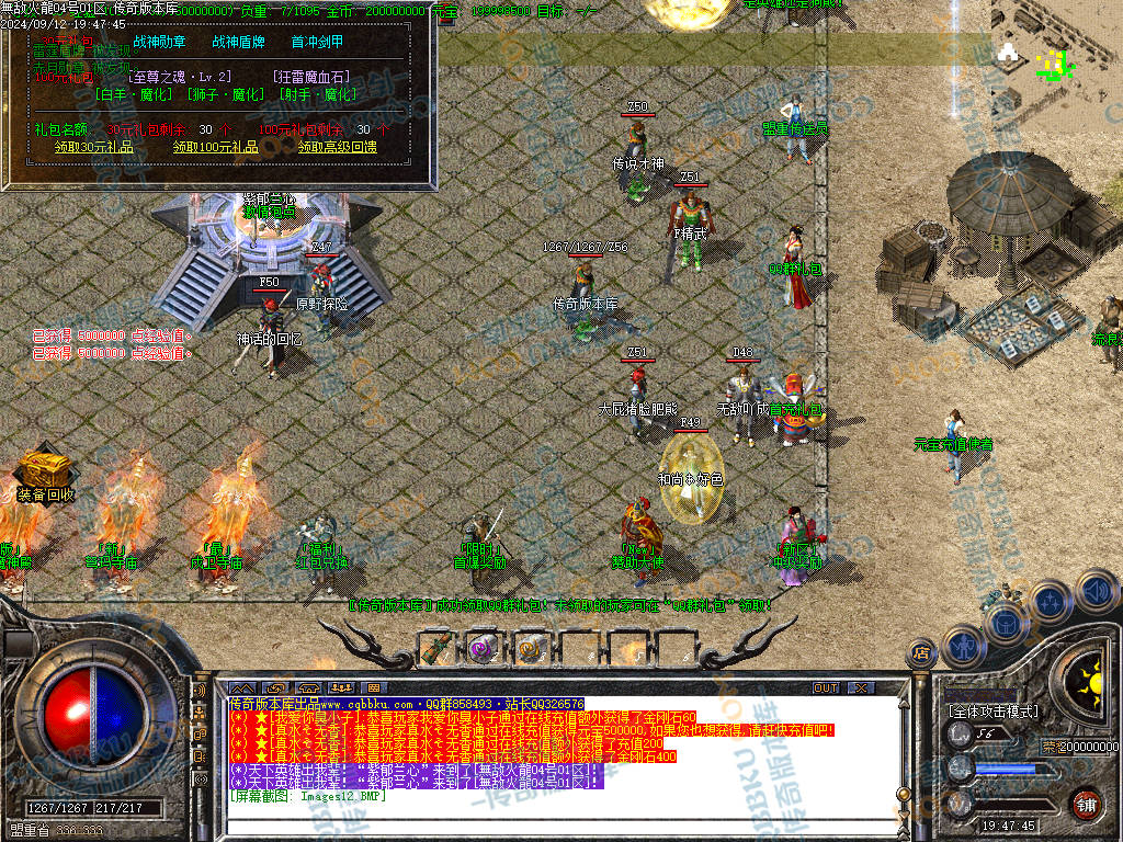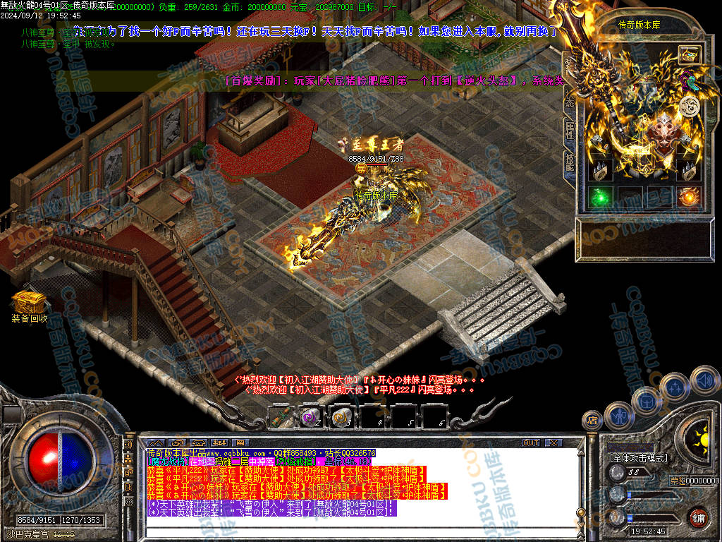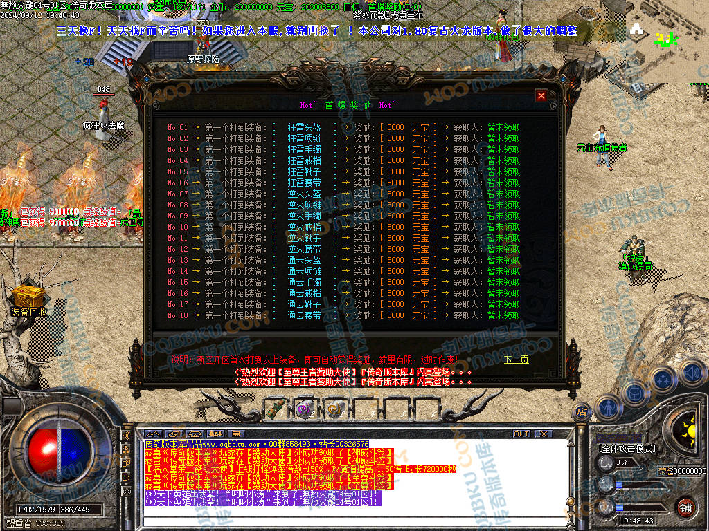 1.80无敌火龙复古三职业传奇版本-带假人光柱-自动回收-自动拾物