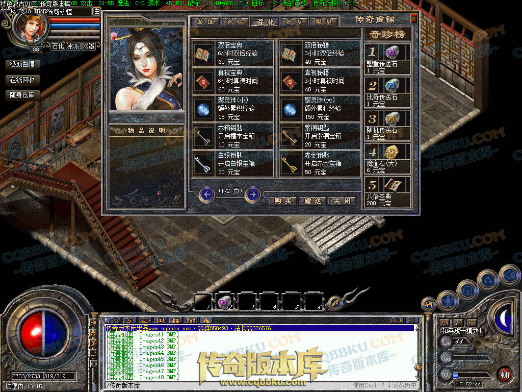 终极BOSS之家从盟重NPC封印人进入新地图雪域、雷炎殿(雷炎三层)已开放盟重NPC不灭火种开放全系装备强化比奇NPC神兵魔冢处王者装备兑换装备碎片集齐9件魔套装,可激活隐藏属性,BOSS之家掉落每天8点30分“富贵逼人”活动产出大量元宝盟重、沧月、银杏三处杂货商人开通黑市