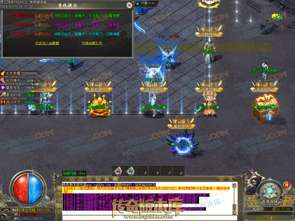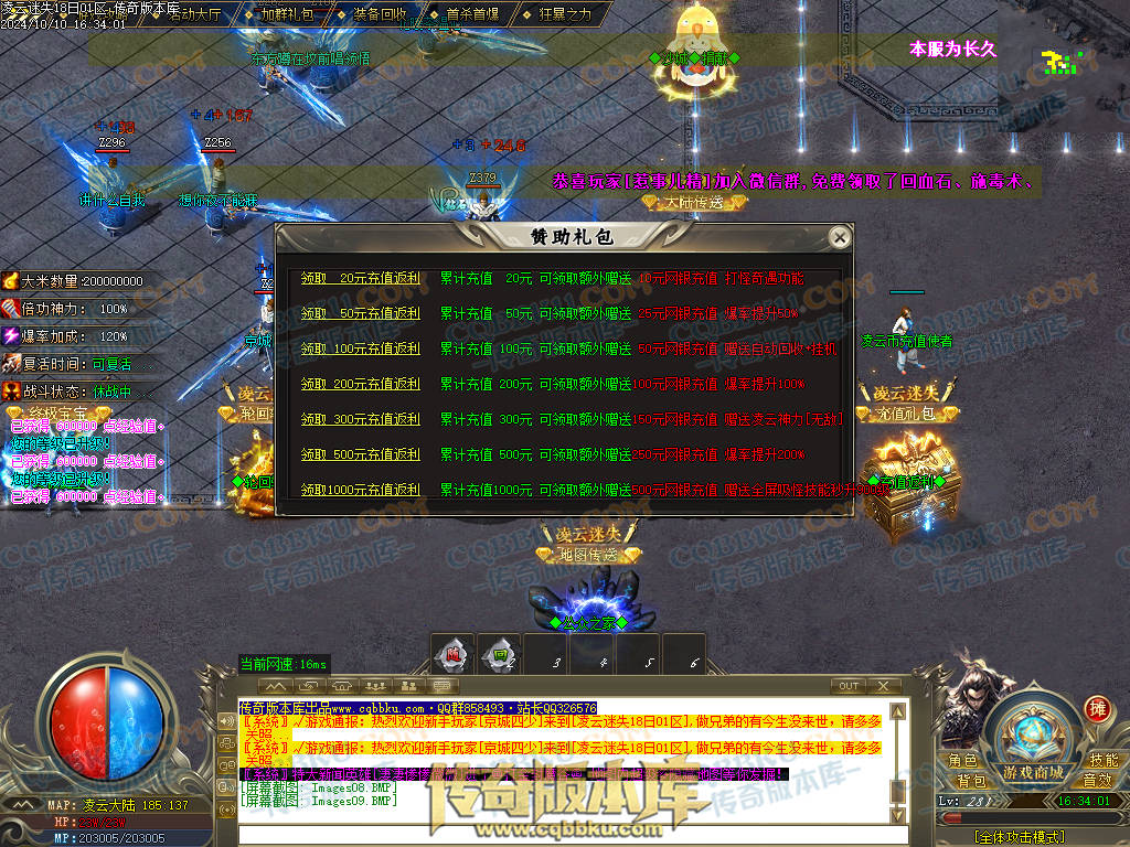 第一步:上线先领取微信群礼包,土城下方新手地图随便打点怪,即可白嫖本服终生会员!