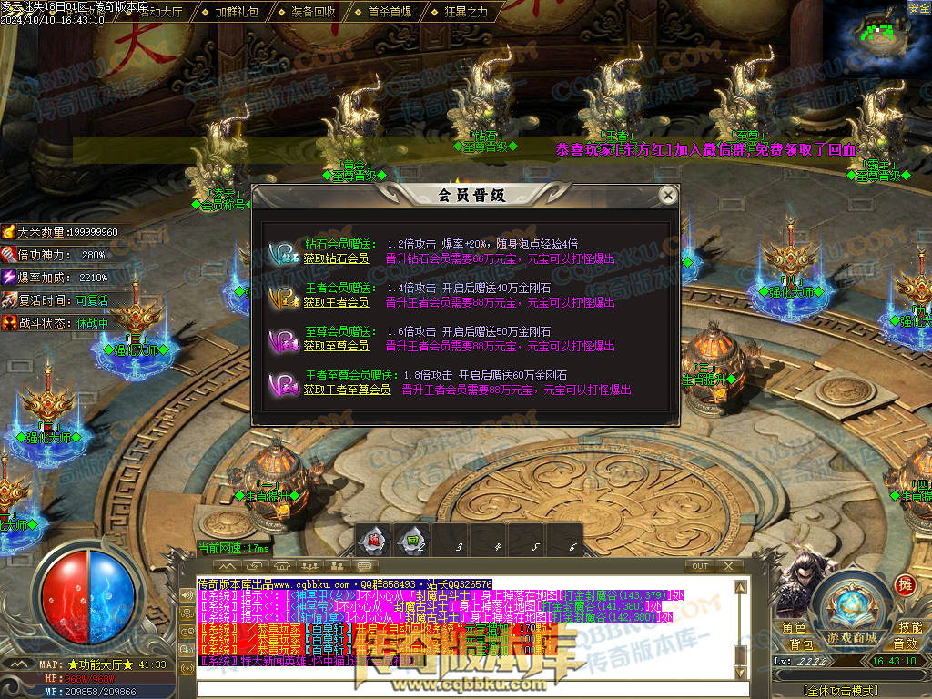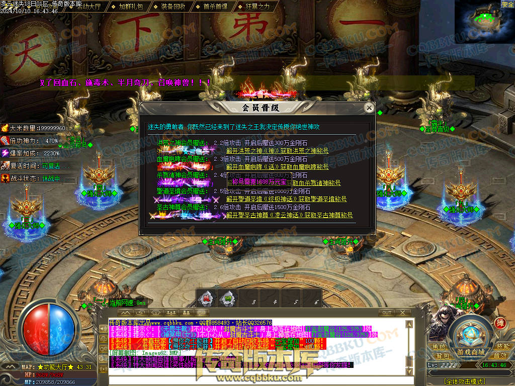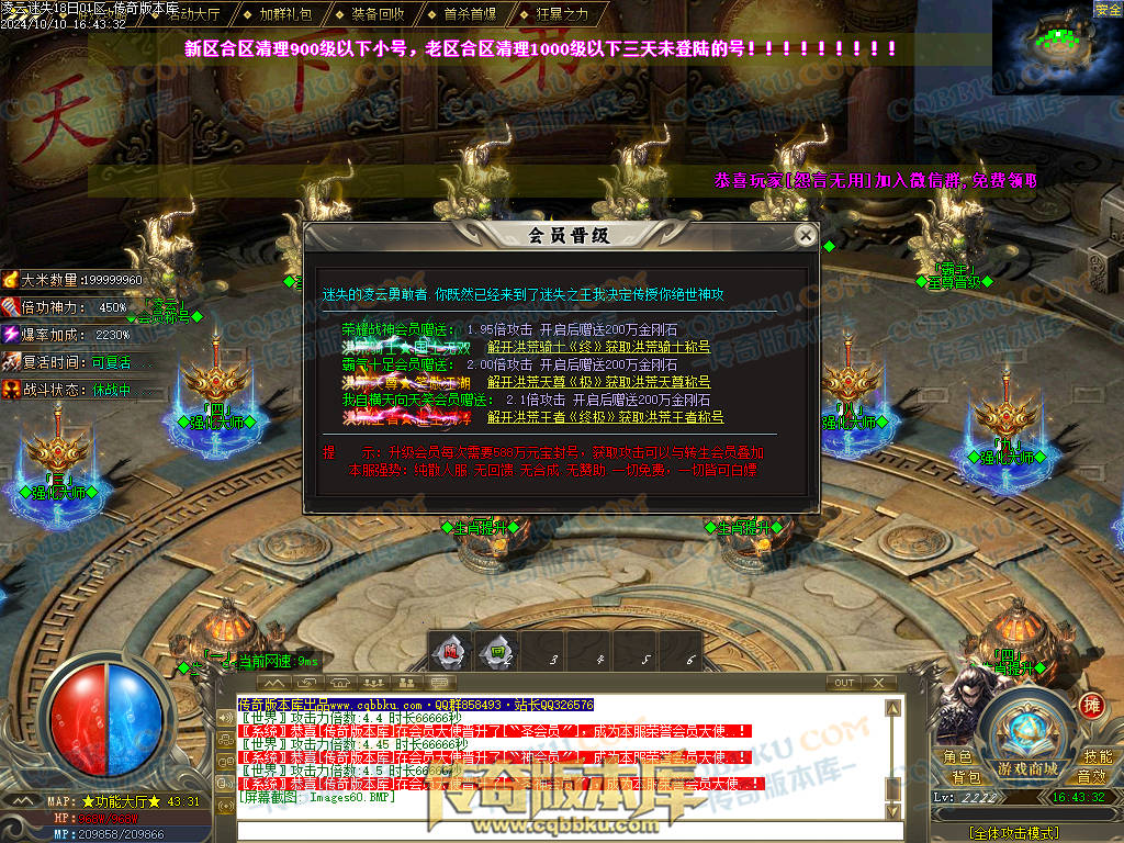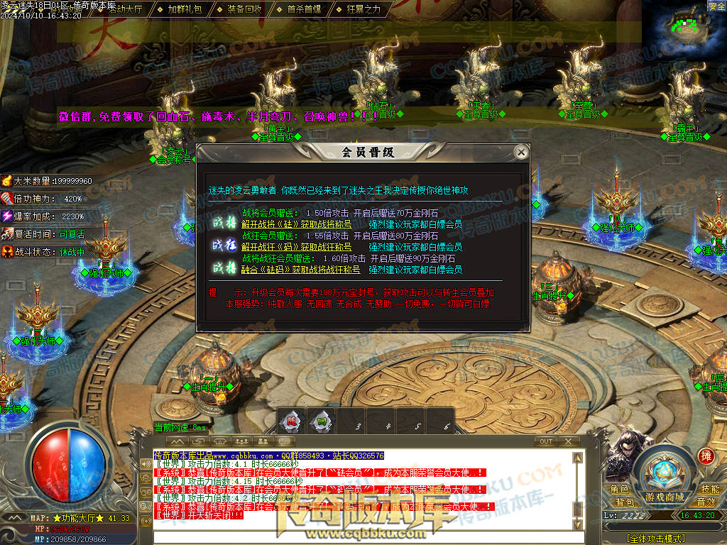 会员账号升级路线:盟重右下→终生会员→凌云新世界→凌云功能大厅