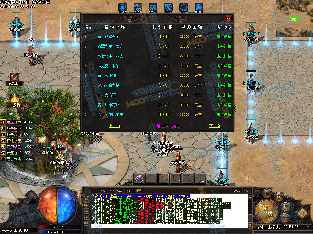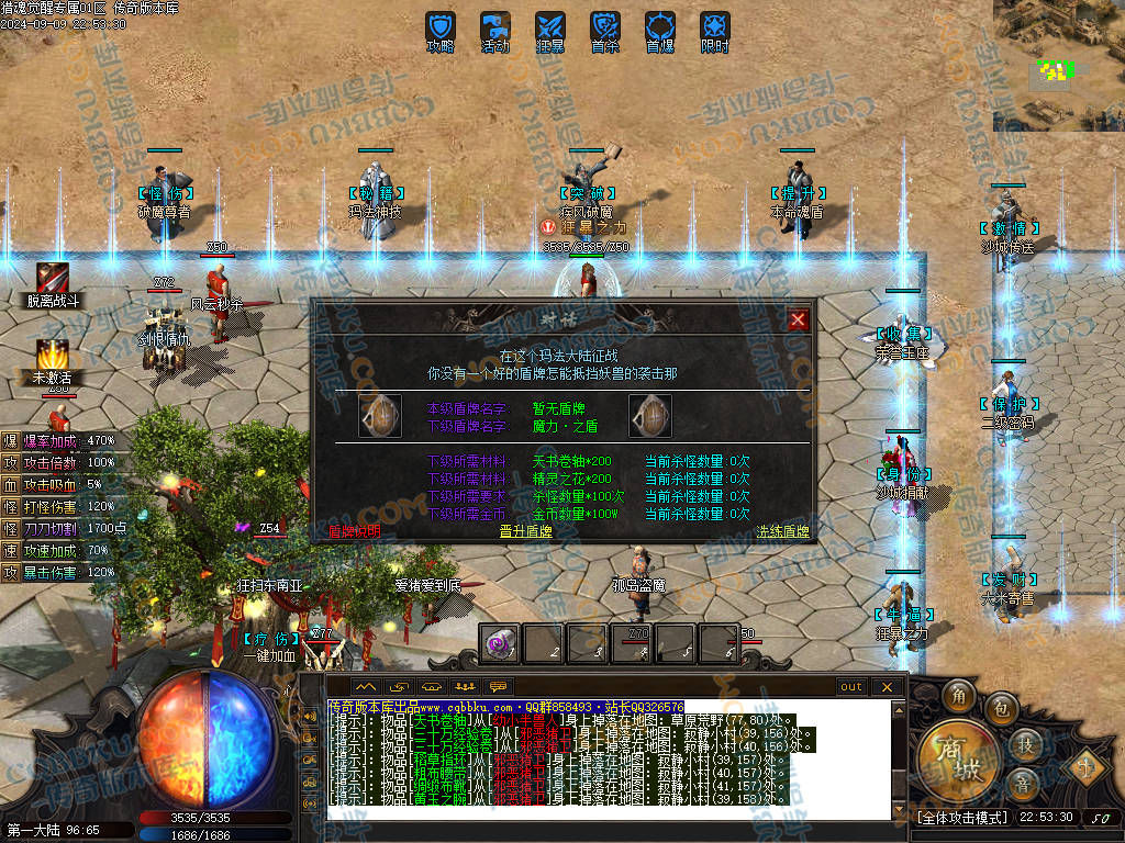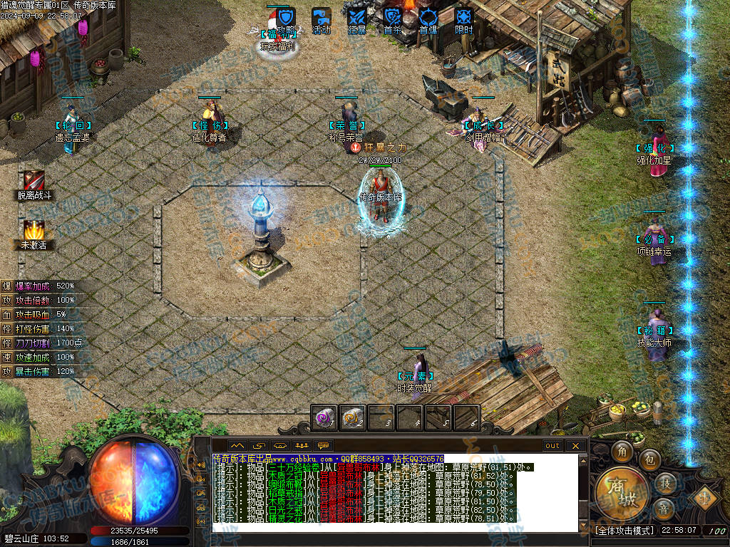 杀猫逐鹿出新村 斩妖除魔入盟重 近观绿涛汇碧海 远眺青山有苍松